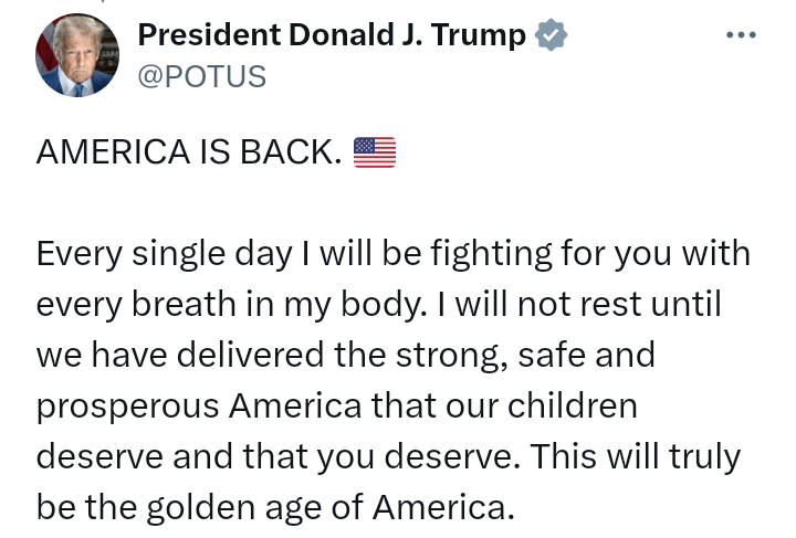 Following his swearing in as 47th President of the United States, Donald Trump, said, “America is back”.